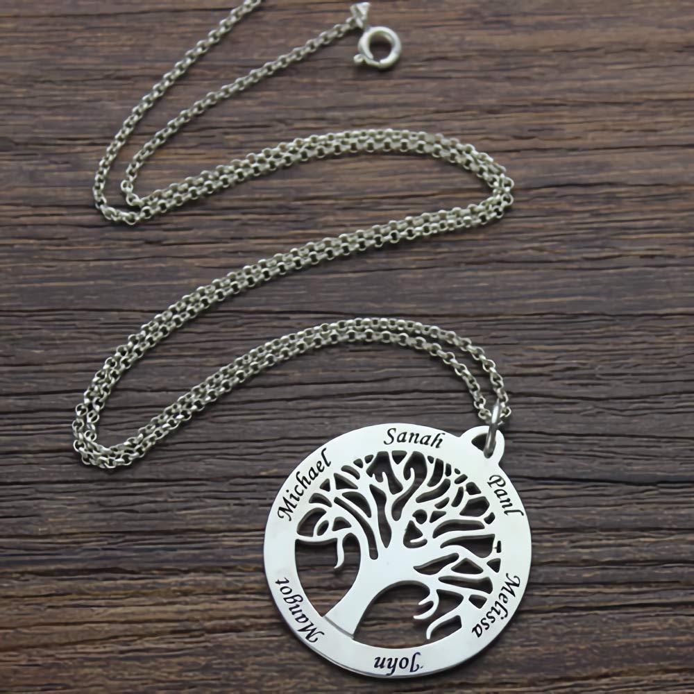Pendants Hua Meng Personalized Family Tree Necklace 6 Names Tree Of Life Name Necklace For Mom Foretadrenaline Com